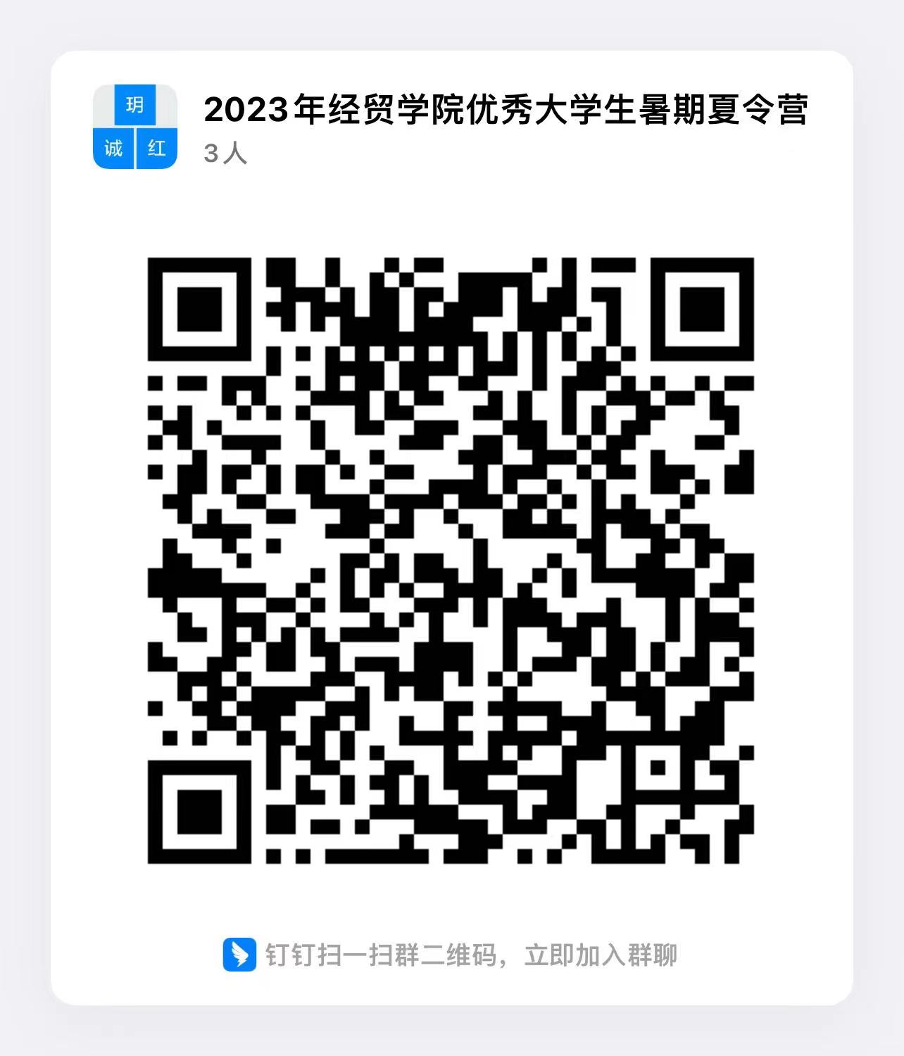 附:经贸学院2023年优秀大学生暑期夏令营参营联系钉钉群(请实名加入,钉钉群号:12655048448):
