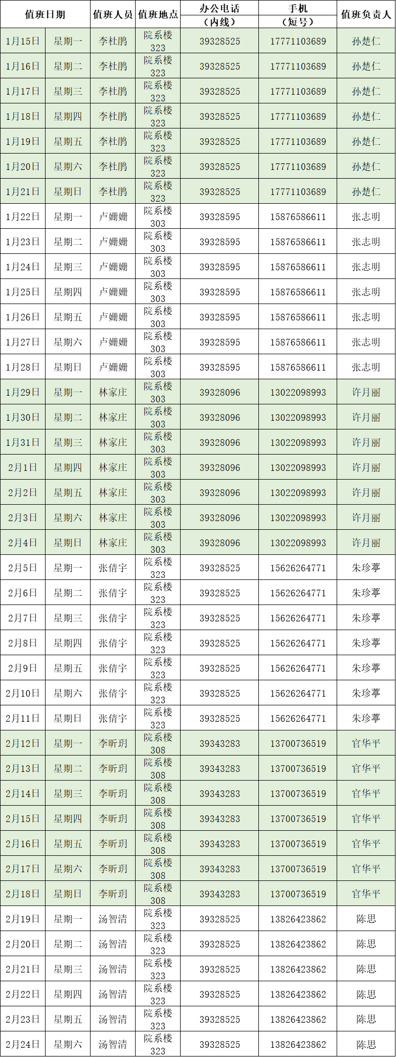 2、值班人员在用印时间到办公室值班,接听电话、检查学院办公室的安全等,如有突发事宜,及时汇报值班负责人。
