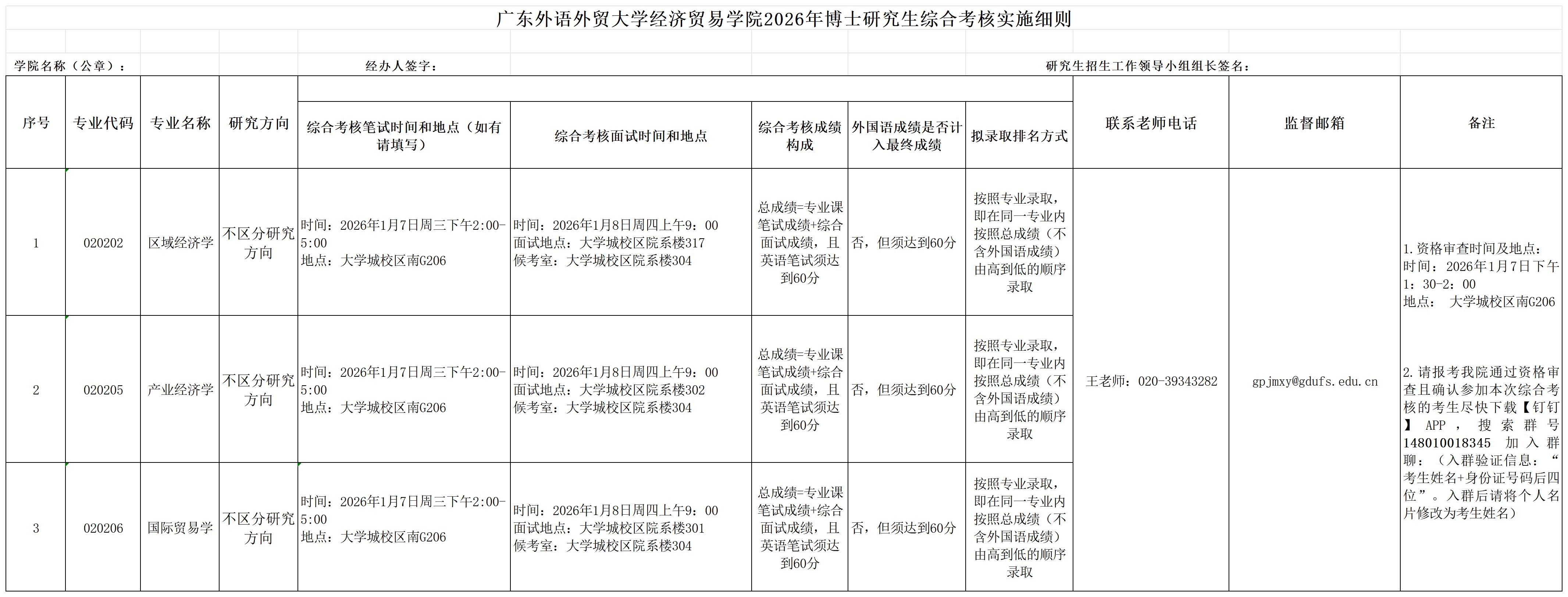 广东外语外贸大学经济贸易学院2026年博士研究生综合考核实施细则