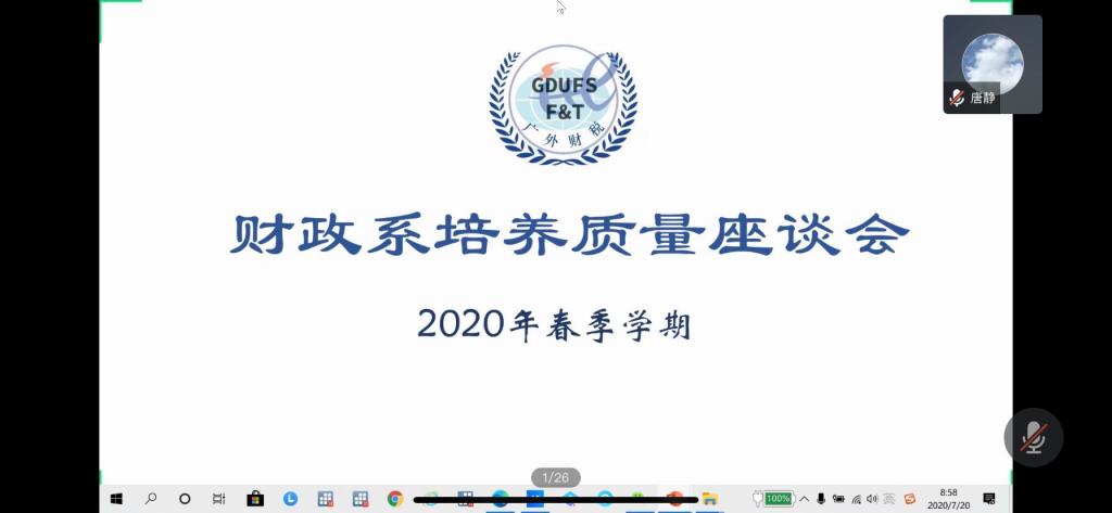 7月20日上午在腾讯会议室,财政系师生座谈会顺利举行。参加本次会议的人员有:院长张建武、院党委书记梁洁、主管副院长唐静、财政系主任安苑、邵培德老师、李翠兰老师、付芳老师、罗春梅老师、刘东华老师、汪艳仙老师、刘清文老师,以及财政系2017-2019级学生。会议由财政系主任安苑主持。本次会议的内容主要是介绍财政学专业的教学培养计划以及听取学生对培养过程的建议。