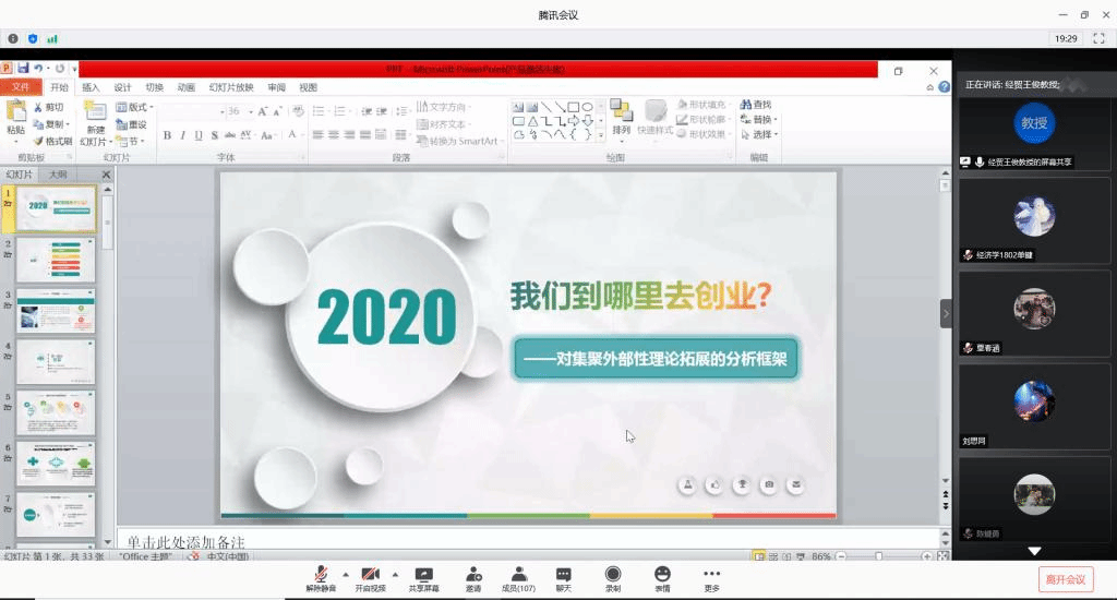 7月23日上午,由王俊教授主讲的学术讲座《我们去哪创业?——对集聚外部性理论拓展的分析框架》在腾讯会议如期举行,一百多名经济学专业学生参加了此次讲座。