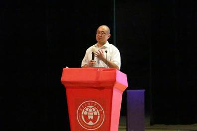 接着,国际经济与贸易专业教师代表李铁立教授上台发言。他在发言中提到,经济贸易学院是广外非语言类的一个大院,国际经济与贸易专业是国家重点建设专业,经贸学院对学生的要求高,从经贸学院毕业的学生也都能取得一定突破。最后他表达了自己对经贸学院新生的信心。