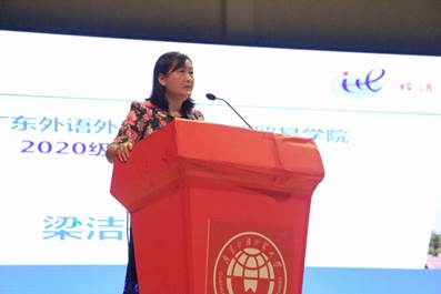 首先,经济贸易学院党委书记梁洁老师上台致辞。她表达了对2020级新生的欢迎。接着她提出理想中的大学生活是充实美好而又多样的,大学中的一切将会帮助新生们成就更完美的自己。最后,她表达了对新生们的期盼,希望新生们不忘初心,牢记使命,坚定信念,认真求学。