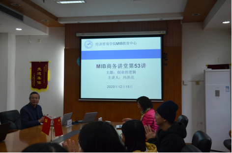 2020年12月15日上午,孵客科技孵化集团 CEO、五山博士联盟秘书长、广外校友创业联合会会长冯洪亮应邀于院系办公楼301作了名为“创业的逻辑”的专题讲座。经贸学院国际合作项目主任陈琳副教授主持讲座,MIB2020级研究生聆听了讲座。