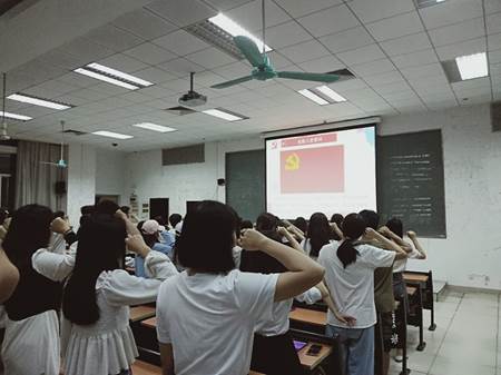 “我宣誓,我志愿加入中国共产党”随着声声誓词,会议的第一部分重温入党誓词开始了。通过重读入党誓词,以入党誓词为载体,重温入党初心,对各位毕业生党员起到砥砺初心、唤醒承诺的教育效果,促使其牢记誓言、恪守承诺,激荡内心情怀。