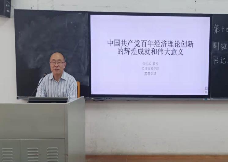 学院院长张建武作“中国共产党百年经济理论创新的辉煌成就和伟大意义”为主题的思政第一课。张建武具体介绍中国共产党百年经济理论创新的理论、重大成果与基本经验,并从六个方面讲述习近平新时代中国特色社会主义经济思想的重大理论意义与实践意义,强调习近平新时代中国特色社会主义经济思想是中国智慧,是实现中华民族伟大复兴的重要理论指南。