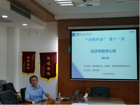 4月7日下午,我院魏作磊教授于南校院系楼301会议室开展经济学教学心得讲座。讲座由经贸学院党委书记梁洁主持,学院部分教师参与讲座。