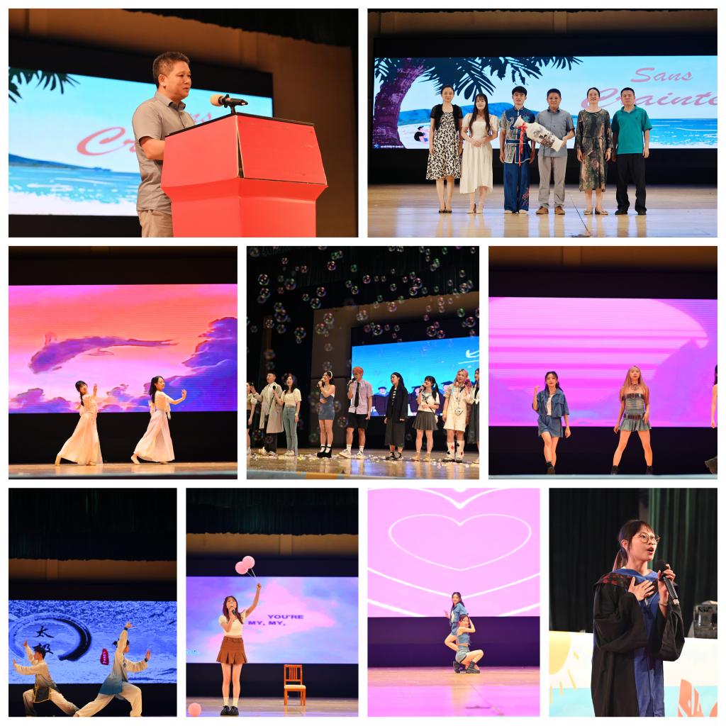 5月24日晚,经贸学院2023年“Sans crainte”毕业晚会于在大学城校区大会堂顺利举行,经贸学院孙楚仁院长,许月丽副院长,官华平副院长,党委副书记陈思,毕业班辅导员以及学工办各位老师一同观看了晚会。