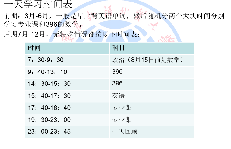 文烨师兄的初始备考时间表