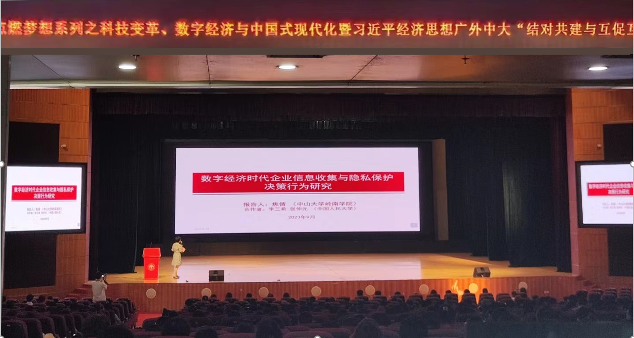 中山大学岭南学院焦倩副教授分享了关于数字经济时代企业信息收集与隐私保护决策行为研究的最新成果。她搭建了市场与政府在信息收集与隐私保护方面的关系的理论分析框架,指出垄断型市场导致数据收集量增加,保护减少;寡头型市场导致数据收集量减少,保护增加。政府监管使宣传的收集量增加,但竞争实质不会改变。