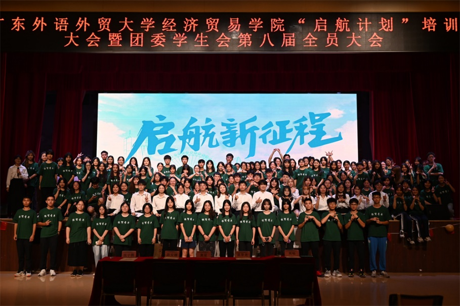 2023年10月12日,广东外语外贸大学经济贸易学院“启航计划”培训大会暨团委学生会第八届全员大会在学生活动中心召开。出席本次会议的有经济贸易学院团委书记黄星老师、团委副书记陈安娜、学生会主席温景尧、张宇腾、周畅、以及各部门部长和全体团委学生会新成员。