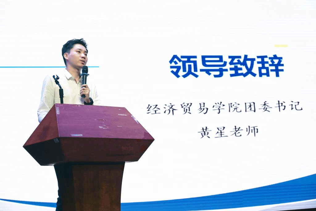 紧接着,是经贸学院团委副书记陈安娜上台发言,介绍团学的整体架构,她提到经贸学院团委学生会是经贸学院的建设者、沟通者、引导者和创新者。学生会主席温景尧、张宇腾、周畅同样给出寄语,希望所有成员可以共同努力,为团学的蓬勃发展而奋斗。