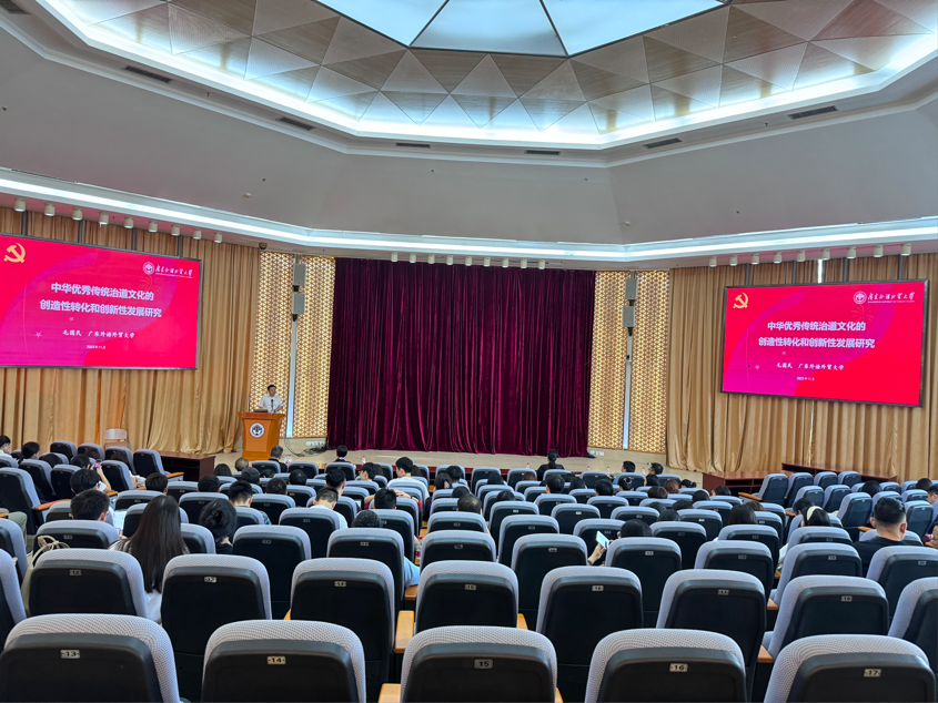 2023年11月9日下午,我院在南校区八角楼报告厅成功举办了主题为“中华优秀传统治道文化的创造性转化和创新性发展研究”的政治理论学习会。本次讲座由广东外语外贸大学马克思主义学院院长毛国民教授主讲。经济贸易学院、国际经济贸易研究院、粤港澳大湾区研究院全体教职工和学院青马班学员出席本次会议。会议由朱珍葶书记主持。