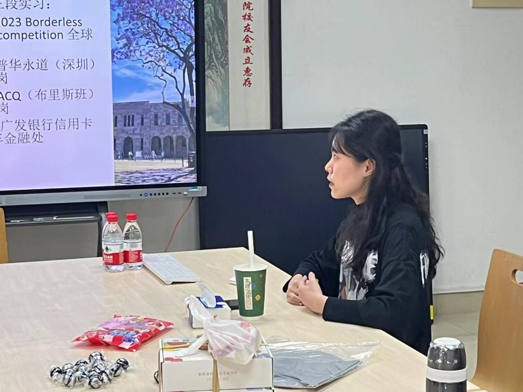 本网讯 1月8日下午,我院在院系楼304会议室举行澳大利亚昆士兰大学校友分享会。经济学创新班负责人张晶晶老师、外事秘书卢姗姗老师、2020级学子蔡嘉昕以及2022级经济学创新班全体学生参加会议。会议由张晶晶老师主持。