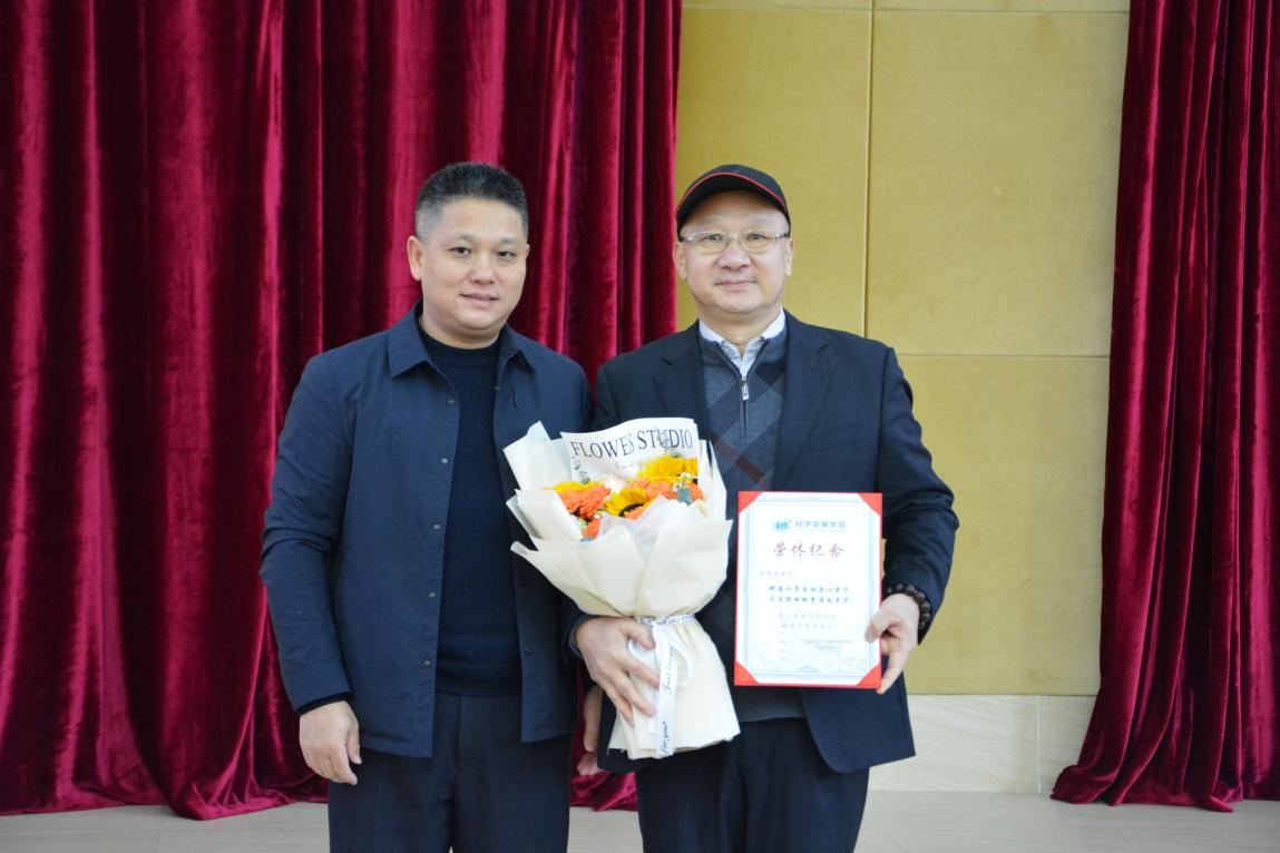 孙楚仁院长向李传喜老师送上鲜花并颁发荣休证书