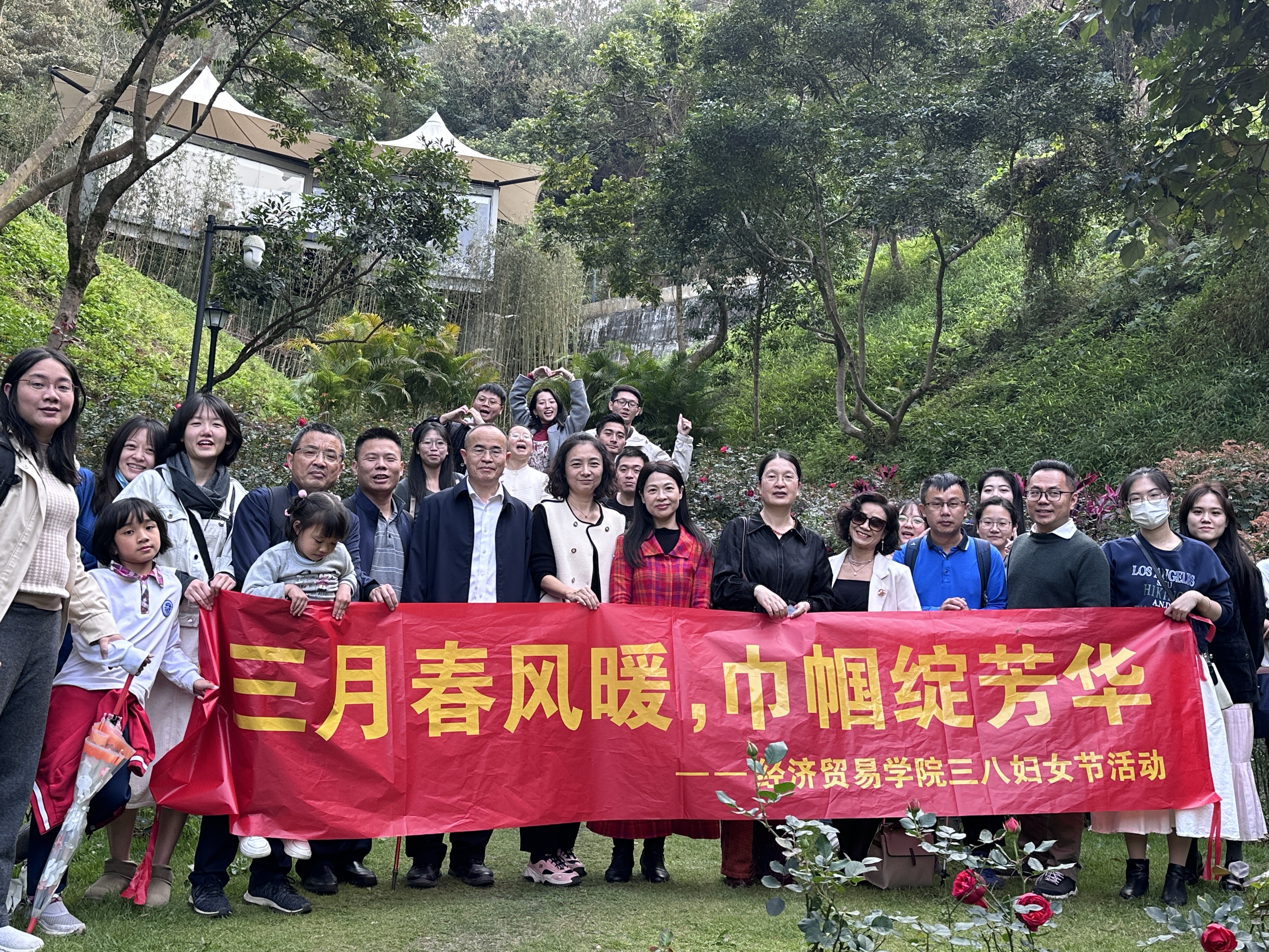 三月花烂漫,芳春意正浓。为庆祝一年一度的国际妇女节到来,丰富学院女教工的精神文化生活,进一步增强幸福感、获得感,3月8日下午,经贸学院工会组织开展“三月春风暖,巾帼绽芳华”妇女节春日踏青活动,学院教工等一行近40人来到美丽的广州市从化区天人山水度假区,共度了一段温馨快乐的美好时光。