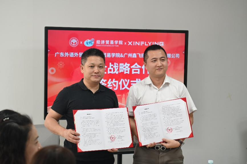 3月29日上午,广东外语外贸大学经济贸易学院与鑫飞扬数码科技有限公司在广州鑫飞扬数码科技公司总部成功举行了校企合作签约仪式暨交流会。此次活动旨在深化双方合作,共同探索校企合作新模式,为培养高素质人才、推动产业升级作出贡献。