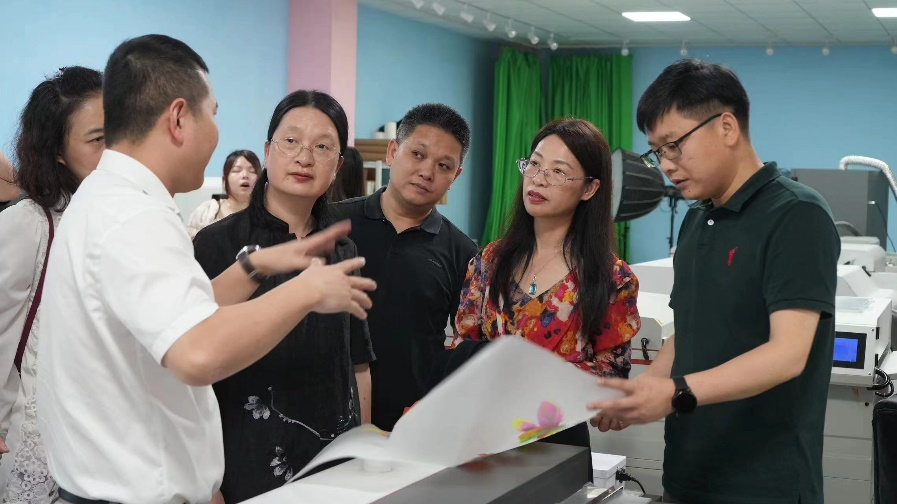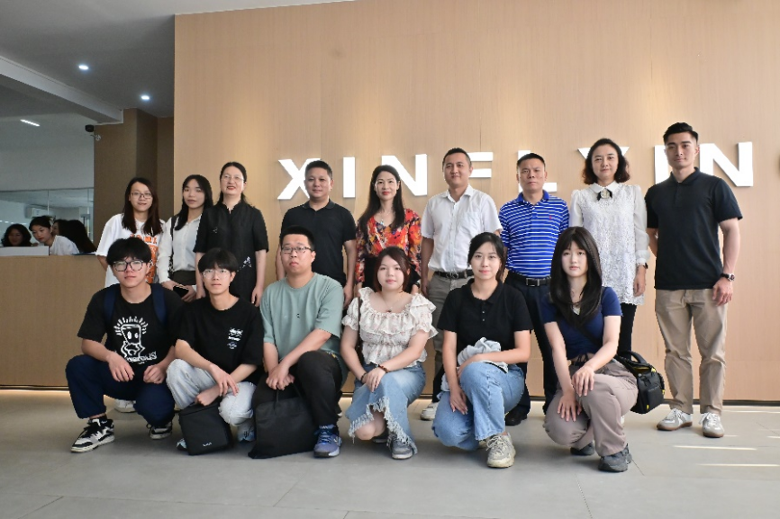 签约仪式结束后,双方领导和嘉宾共同参观了鑫飞扬数码科技有限公司的展厅、仓库和办公场所,了解了公司的生产流程和运营模式。企内校友也与经贸学院学生代表开展了对话交流与经验分享活动,为学生提供了宝贵的职业建议和成长经验。