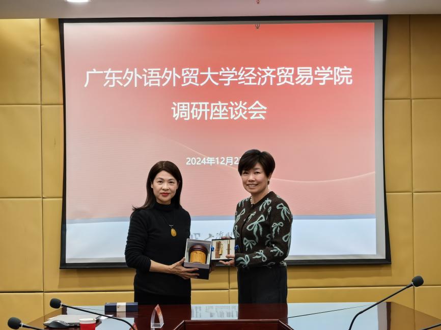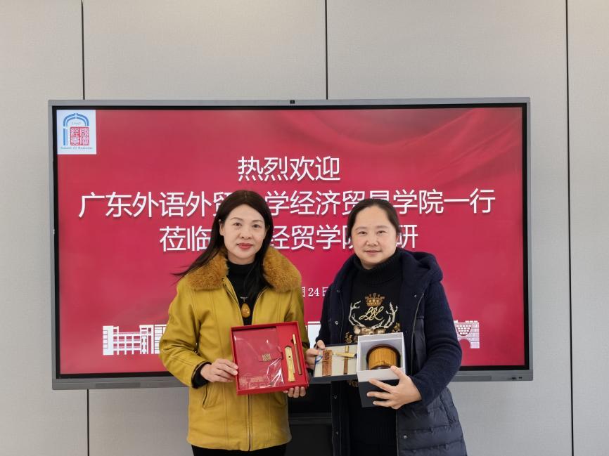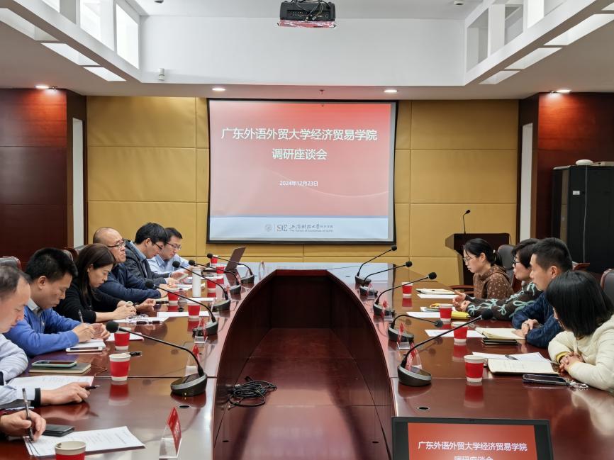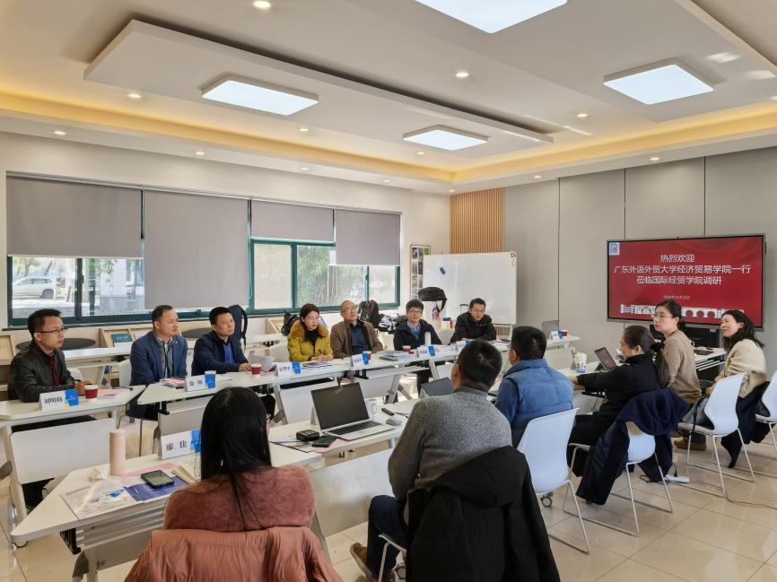 朱珍葶对广外经贸学院的发展历史、学科布局、专业设置、未来发展方向等进行了详细介绍,并就学院近年来在国际化人才培养方面所取得的成果进行了分享。郭茜介绍了上海对外贸易大学国际经贸学院基本情况,强调学院在学科建设、科研实力和文化底蕴方面的优势,并着重讲到学院对国际化人才培养及师资队伍建设的重视。何欢浪院长特别分享了学院教学案例集、教学主题研讨会、校企协同育人新模式等方面的特色做法与经验。会上,双方还就党建引领学科发展、专业硕士招生与培养、教师科研与教学激励措施、创新班建设与管理等方面进行了深入探讨。