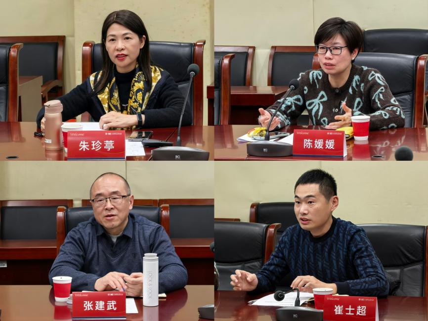 会议伊始,朱珍葶书记及李粤江书记分别从学院基本情况、办学特色、党建工作、师资队伍、人才培养等方面介绍各自学院基本情况。李粤清同时分享了复旦大学学科结构调整计划、学科交叉与教育融合所遇到的挑战、教师团队建设及人才流动管理等方面经验。陈钊分享了国际交流、科研机制改革、师生学术交流常态化实践的经验,并提到人文关怀、学术氛围、文化纽带对师资队伍管理与发展的积极影响。张金清分享了学院研究生、博士生培养、教师队伍管理方面的相关经验。高笑梅则就学院招生计划、专业培养、国际化合作新模式、双学位项目、留学生招生与培养等进行了经验分享。