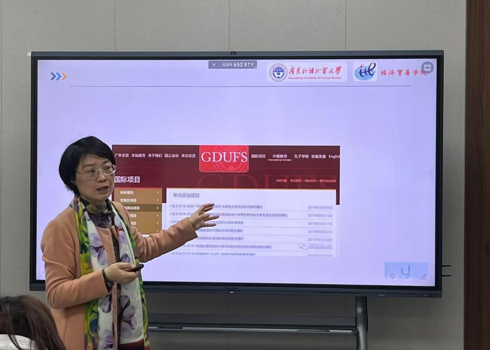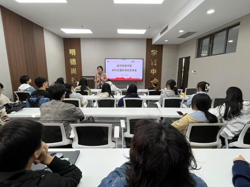 本网讯 1月8日上午,经贸学院本科生国际合作项目宣讲会于院系楼举行。我院国际合作项目主任陈琳老师、2021级交换生代表刘晓茵同学以及2023级学生代表出席本次宣讲会。会议由陈琳老师主持。