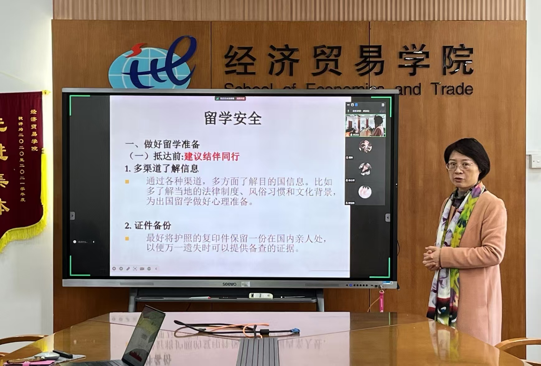 会上,陈琳老师对于交换生寒假出国交流事宜中关于学生人身安全、财产安全等方面进行详细的讲解,并就生活和学习,在证件准备、目的国文化法规了解、保险购买等多方面进行叮嘱。她在会议上着重强调,希望同学们身在国外应该及时报备行程给老师以及学校这一诉求,并叮嘱同学们应添加必备的联系方式以应对紧急情况。