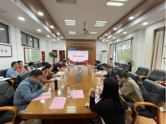 院长孙楚仁就人才引进、科研成果、人才培养和学科建设方面做了总结汇报。人才引进方面,学院不断优化人才引进规章制度,提高人才引进的效度和力度,坚持引培结合,致力打造高水平教师队伍。科研方面,学院通过举办科研项目申报辅导论证会、学术研讨会、科研午餐会等各类活动,推动科研高质量发展。2024年,学院11名教师获得广东省社科规划年度常规项目以及三类专项立项,立项数同比增长63.6%;人才培养方面,数字经济专硕学位点完成首次招考,学院获批全国首批出口管制专业学位研究生培养试点单位,为专业研究和人才培养开辟新路径。此外,学院学科建设水平显著提升,2024年软科排名中,我院应用经济学位列第29名,稳居全国前11%,理论经济学位列第39名,较2023年上升1名,进入全国前35%。