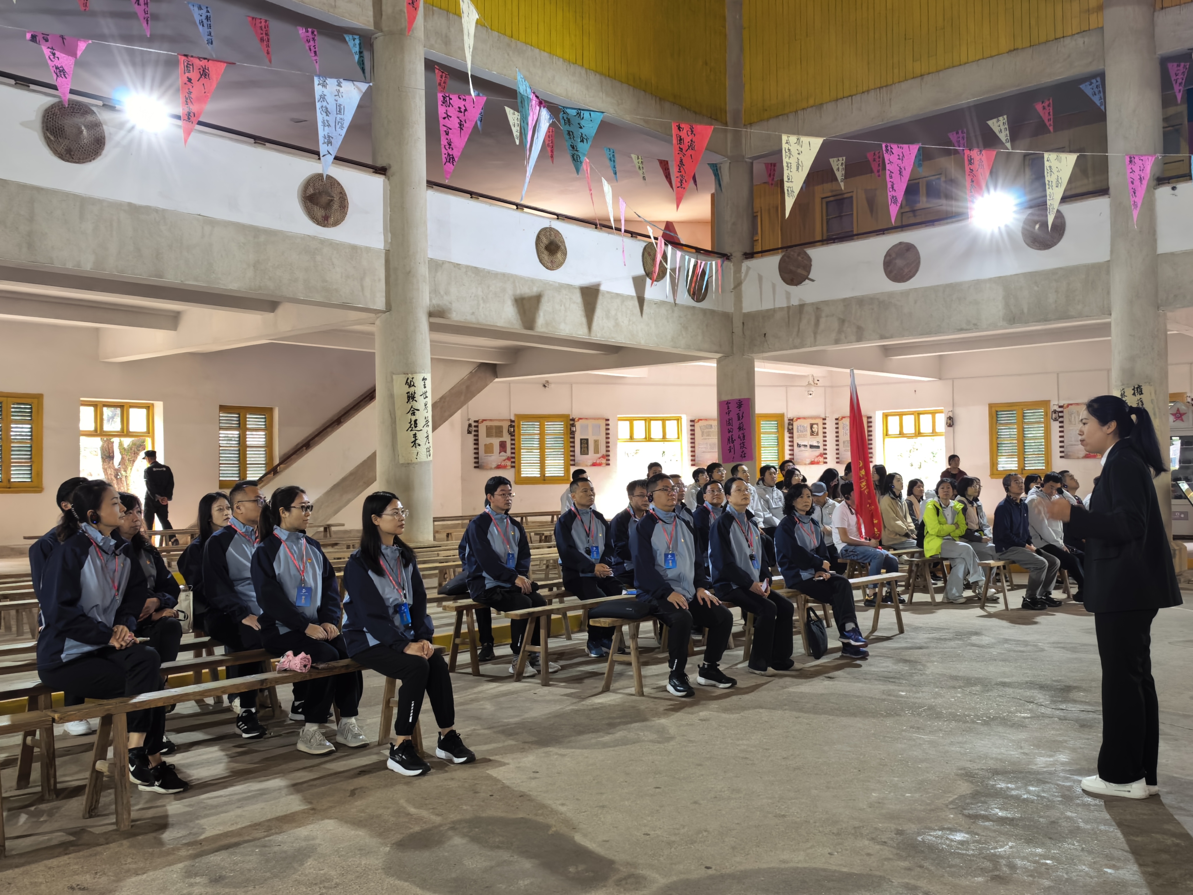 “二苏大会”礼堂旧址庄严肃穆。步入礼堂内,学员们耳边仿佛听见当年代表们在会场的热烈讨论以及议案通过时的掌声雷动。这里是红色政权建设的重要历史见证,诞生了毛泽东同志“关心群众生活,注意工作方法”的著名论断,深刻体现共产党为民执政的理念,再次激励着学员们不忘来时路,始终保持同人民群众的血肉联系,始终接受人民批评和监督,始终同人民同呼吸、共命运、心连心,走好新时代党的群众路线。