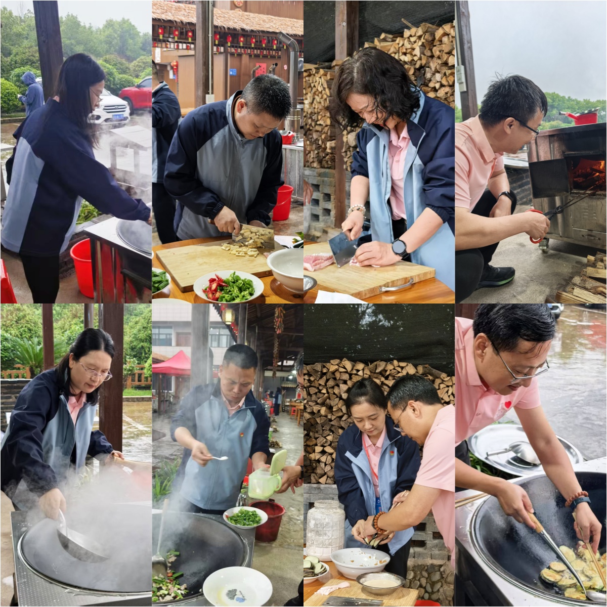 第二场情景教学是重走游击路——罗汉岩。罗汉岩山崖陡峭,巨石嶙峋,是革命年代众多游击战争上演的战场,更是一座用信仰雕刻的丰碑。学员们克服了恶劣的雷雨天气,踏着崎岖蜿蜒的山路,行走在丹崖碧水间,以饱满的革命热情和坚定前进的步伐重走游击战场,切身感受到当年革命战士在极端恶劣环境下依然顽强战斗的钢铁意志。群山环绕中,学员们进行《浴血坚持,红旗不倒》微党课学习,齐声朗读诗陈毅元帅的《赣南游击词》。豪迈的诗句在山谷间久久回荡,仿佛穿越时空,与当年游击战士的呐喊遥相呼应,红色精神的伟大力量在此刻共鸣。为深入体验革命年代的柴米油盐,走完游击路后学员们开展了“红军餐”制作体验活动。学员们在土灶台前分工协作,用青菜、豆干、辣椒等限定食材制作餐食,在烟火气息中感悟红色基因的传承。现场气氛异常热烈,烧柴声、锅铲声、欢笑声此起彼伏。