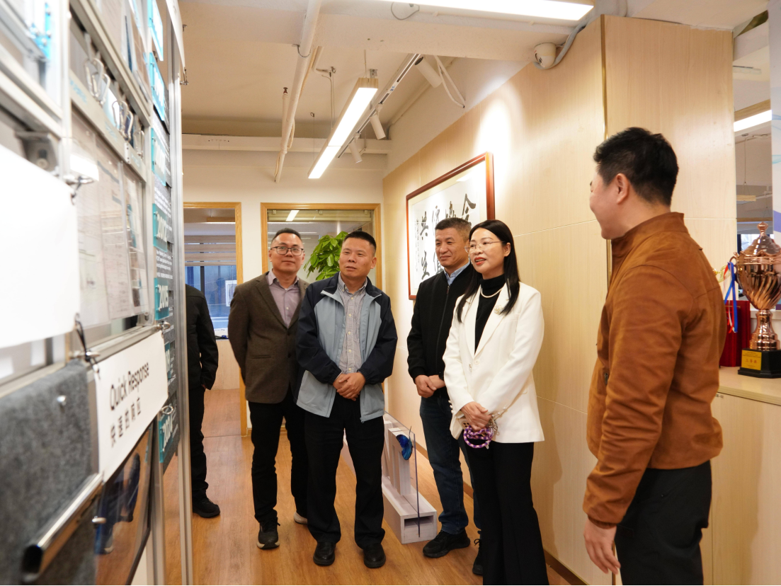 本次走访的企业——广东拓臣科技发展有限公司,是扎根白云区的优秀校友企业。在白云校友会会长郑壁奎的陪同与讲解下,学院一行深入参观了公司产品展厅、质量检测线与研发中心,细致了解了其核心产品的创新优势、生产工艺与严谨的质量管控体系。通过实地观摩与交流,学院领导与老师对校友企业的运营模式、技术实力与发展前景有了更为直观和深入的认识。