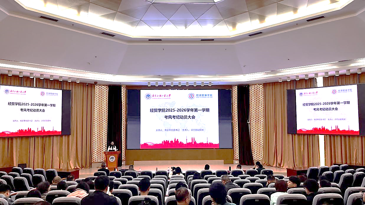 副院长许月丽进行期末考风考纪动员讲话,并就本年度本科教学和国际化工作进行报告。她指出,本学期期末考试将于12月28日至次年1月10日举行,这既是对学生学习成果的重要检验,也是校风学风建设的集中体现。她明确了考试作弊行为的纪律红线,并对期末监考工作作出部署,进一步压实监考责任,全力保障期末考试平稳、有序、公正进行。随后指出,本年度学院本科教学教研工作成果显著,招生质量大幅提升,专业建设扎实推进,课程立项与教学获奖方面均收获颇丰。此外,本科生升学、转专业等工作有序开展,实习实践、校企合作持续拓展和深化;国际交流合作也取得积极进展,学生及师资国际化项目逐步落地,学术交流与合作平台不断拓展。