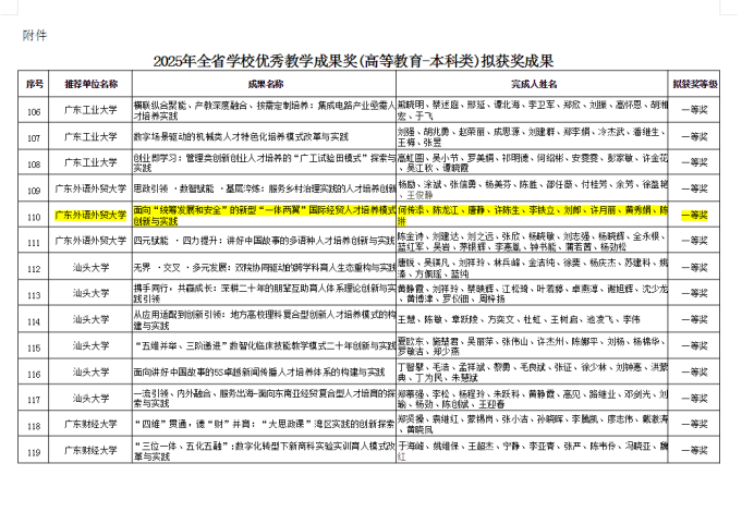 在教学改革方面,学院成绩卓著。陈琳老师的《国际结算》课程在第五届全国高校教师教学创新大赛广东分赛中荣获二等奖。由何传添教授牵头申报的《面向“统筹发展和安全”的新型“一体两翼”国际经贸人才培养模式创新与实践》项目获2025年全省学校优秀教学成果奖(高等教育-本科类)一等成果奖,由申明浩教授牵头申报的《校际融汇能力融通产教融合-—教育共同体理念下湾区人才培养探索与实践》项目获2025年全省学校优秀教学成果奖(高等教育-本科类)二等成果奖。此3项大奖教学成果获得高度认可,育人质量得以稳步提升。陈琳老师的《粤港澳大湾区数字贸易人才培养路径探索——基于“AI+产业场景”的产教融合实践》获省级高等教育教学改革建设项目立项,冯然老师的“跨境电子商务教研室”获省级质量工程项目课程教研室。