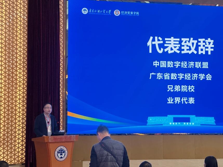 对外经济贸易大学全球创新与治理研究院执行院长吕越教授作为兄弟院校的代表致贺词指出,广外成立数字经济现代产业学院与数字经济系,是顺应数字技术革命和产业变革趋势的重要举措。对外经贸大学愿与广外进一步深化合作交流,围绕数字经济与国际贸易深度融合开展联合研究与人才培养,共同探索数字时代国际化人才培养新路径。