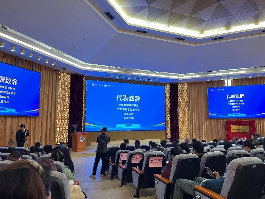 为深入探讨数字经济与贸易高质量发展的理论路径与实践方向,推动数字经济与实体经济深度融合,1月10日上午,广东外语外贸大学经济贸易学院在大学城校区八角楼报告厅举办“数字经济与贸易高质量发展论坛(2026)暨广东外语外贸大学数字经济现代产业学院与数字经济系成立”大会。论坛以“数字经济与贸易高质量发展”为主题,来自浙江大学、中山大学、华南理工大学、湖南大学、对外经济贸易大学、上海财经大学、西南财经大学、《国际经贸探索》编辑部、《南方经济》编辑部、《国际商务研究》编辑部、《战略决策研究》编辑部、中国数字经济联盟、广东省数字经济学会、广州空港综合保税区投资运营有限公司、深圳木愚科技有限公司、广东新安怀科技发展有限公司等90余所高校及学术组织、行业机构的专家学者和业界代表齐聚一堂,围绕数字经济学科建设、数字治理、数字贸易与数字创新等议题展开深入研讨。