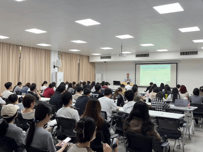 在互动交流环节,在场学子围绕讲座内容积极提问,李教授逐一细致解答,从研究分析层次、行业差异、双向国际化路径等方面给出专业建议,为学子们的学位论文与研究设计提供了重要启发。