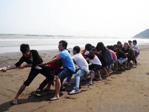 海滩边的拔河比赛