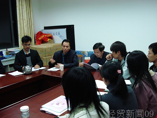 11月23日下午,经贸学院党委书记何传添、党委副书记康为茂和团委书记刘郎老师一道同经贸学院团委学生会干部举行座谈,畅谈学院院风和学风的建设。