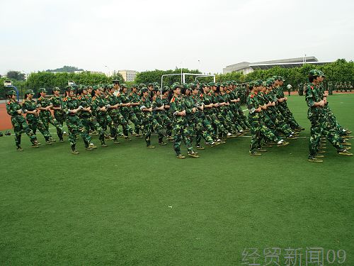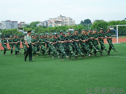 “我是一个兵,来自老百姓……”,“寒风飘飘落叶,军队是一朵绿花……”。运动场上,这些此起彼伏的歌声中张扬着09级经贸新生的青春与激情。而动人的歌曲中那散发着严肃沉稳的温情的男低音,则是敬爱的教官作为新生踏上新征程的引路人所留下的师长情。