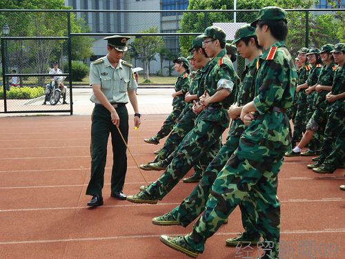 我们总是看见教官严肃的脸,来回踱步,在队伍中寻找不协调。在队伍的一侧,高喊着口令,看着新生们一天天增进的成熟和进步。训练时的一丝不苟,休息时的风趣幽默的教官将在这18天里陪伴着、带领着新生们走向真正的大学起点。他们身上傲气的军人风采,在烈日下更显威武的锋芒。而每次教官对离队的病号的关心,唱着悠长军歌时掩埋的深情,突然明白他们的苦和情,其实与我们无异。教官,您真的辛苦了。