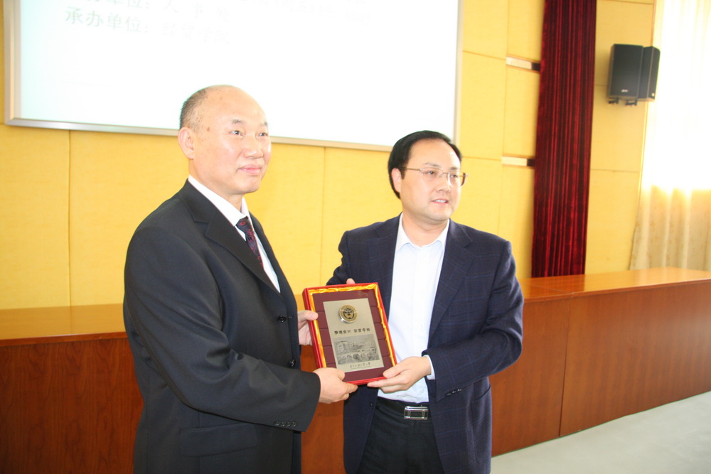 讲座开始前,石佑启向张宗成赠送了纪念品。
