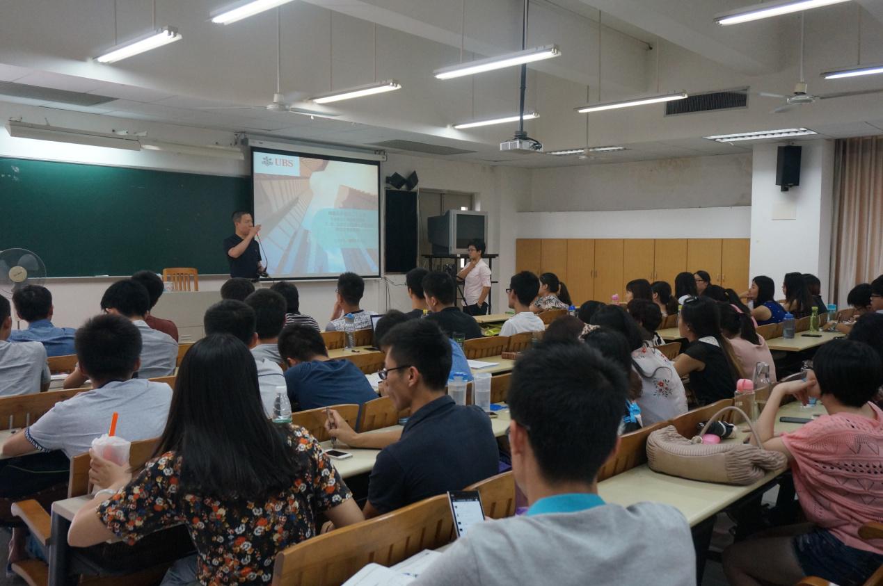 庄剑文先生首先从银行的分类讲起,向同学们分别介绍了商业银行、投资银行、私人银行,并以国内外的私人银行作为对比,表明了国外私人银行的从业者不仅对专业知识有一定的要求,还需要有一定的社会阅历积累,在座的同学们都听的津津有味,并认真地做着笔记。
