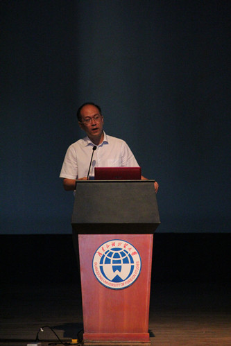 下午3点整,在庄严的国歌声中,典礼正式开始。李铁立首先为新生简单介绍学院的基本概况,接着从高中和大学的区别出发,围绕“怎样学习”和“怎样思考”,提出了学习,为人的要求,为新生规划大学生活指引方向。