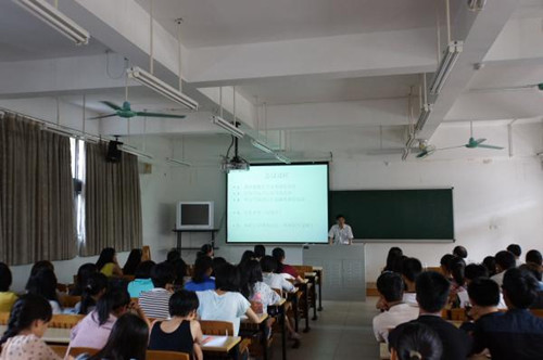 接着,许陈生教授从创新班的班级结构、教学计划、就业方向等方面向同学们介绍了创新班专业情况。创新班的教学计划共有196个学分,分布在通识教育,国际经贸,英语专业和实践教育四个模块。针对同学们非常关心的就业问题,许陈生教授也给出了解答:涉外经济与管理业务部门和银行等都是不错的选择。另外,学院在国际交流项目上也会优先考虑创新班同学。