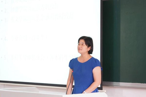 随后,经贸学院书记黄秀娟发表讲话。她在对学校开展的这种人才培养模式表示肯定的同时,也对英文学院的合作和同学们的选择表示感谢。接着她对同学们提出自己的要求,希望同学们能坚持自己的选择,充分利用资源,互帮互助,脚踏实地,成为优秀的国际化经贸人才。