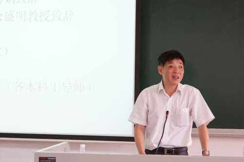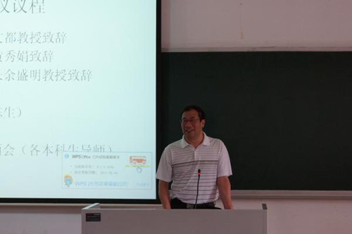 仪式伊始,校教务处处长詹文都教授对进入创新班的在座学生表示祝贺,同时,他也提出了自己对他们的要求和希冀。詹文都提到,学校的教学目标是构建多元化、可供学生个性化选择的教育体系,因此创新班的创办应运而生。为贯彻落实党的群众路线,他会在每学期举办座谈会,与学生们交流,倾听他们对课程内容的建议,以促进课程的不断完善。“希望在创新班模式下,能提高学生们的国际化素质,实践能力和创新能力。”詹文都如是说。最后他要求同学们能做好时间的管理和规划,全方位提高自身的素质。
