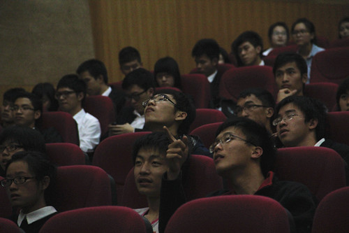 观众们认真聆听选手的发言