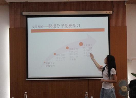 经贸学院学生党建研究会徐瑜介绍学生党建工作