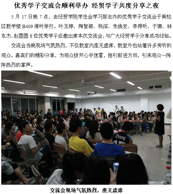 优秀学子交流会顺利举办 经贸学子共度分享之夜