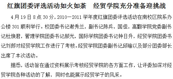 红旗团委评选活动如火如荼 经贸学院充分准备迎挑战