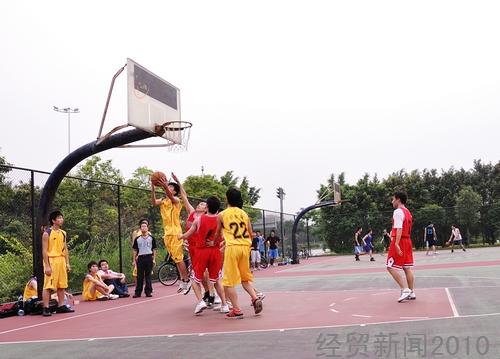 6月10日下午5点,经贸杯篮球赛总决赛在南校区篮球场上展开激烈角逐。此前一路过关斩将闯进决赛的两支劲旅——07金融和07经济狭路相逢,通过此役争夺最终的冠军奖杯。